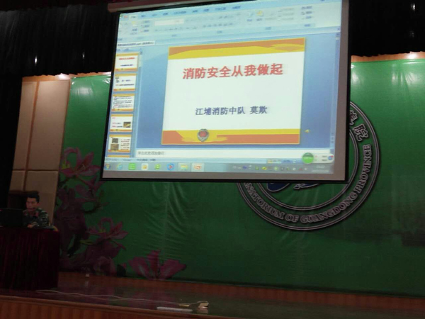 下午3:00,院邀请从化消防总队江埔支队消防助理莫欺在院怡香阁礼堂对全体人员进行消防知识培训,通过投影讲解逃生自救七十二口诀。大家聚精会神,认真听讲,受到一次消防理论培训。理论培训后全体人员在餐厅大堂模拟火警逃生演习。大家用湿白毛巾捂住口鼻,从模拟火场匍匐逃生,体检自救技能。